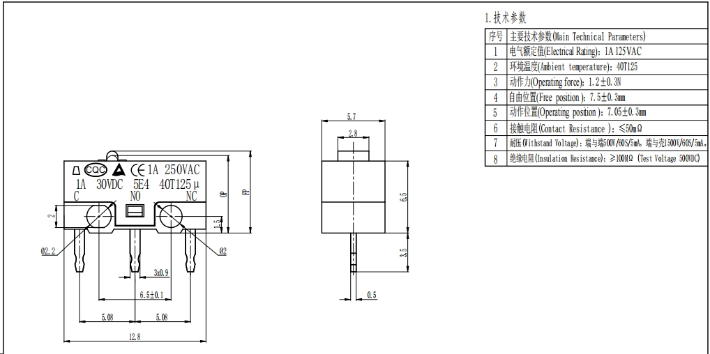 Використовуючи запатентований механізм швидкого спрацьовування, час відгуку тригера становить ≤8 мс, покращуючи продуктивність на 25% порівняно з традиційними мікроперемикачами. Хід спускового гачка точно контролюється в діапазоні 0,3-1,0 мм із діапазоном робочої сили 1,5-4 Н. Відгук при натисканні чіткий і чіткий, без залипання або вільного ходу, що дозволяє точно контролювати «легкий дотик для підключення, відпускання для розриву», ідеально підходить для сценаріїв, що вимагають високої чутливості тригера. Контакти виготовлені зі сплаву срібло-олово високої чистоти та оброблені за допомогою точного точкового зварювання з початковим контактним опором ≤30 мОм. Номінальне навантаження підтримує 1 А/250 В змінного струму та 3 А/125 В змінного струму, ефективно запобігаючи контактному нагріванню або опіку під час проходження струму.