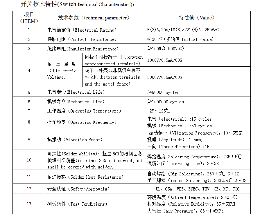 | 1 | Електричний рейтинг | 5(2)A/10A/16(3)A/21(8)A 250 В змінного струму | |