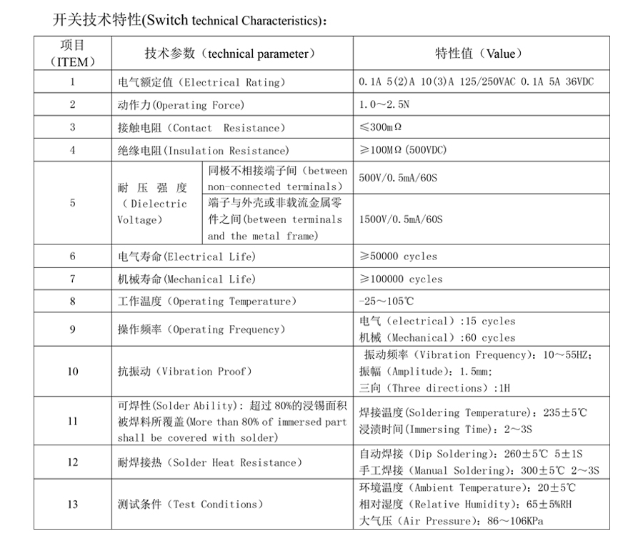 | 1 | Електричний рейтинг | 0,1 A 5 (2) A 10 (3) A 125/250 В змінного струму 0,1 A 5 A 36 В постійного струму | |