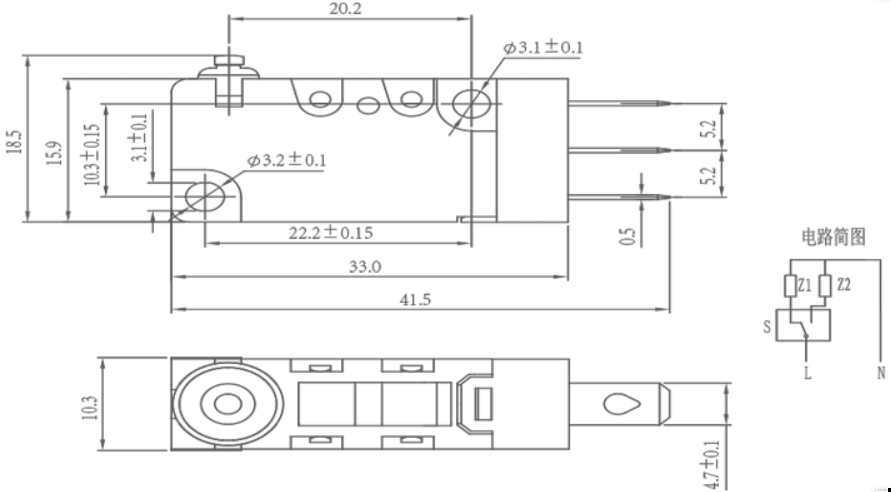 | 1 | Електричний рейтинг | 5 (2) A 125/250 В змінного струму 10 (3) 125 В/250 В змінного струму | |